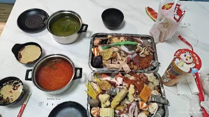 和我姐一块的,我感觉番茄锅好吃,那个绿色的是藤椒锅。